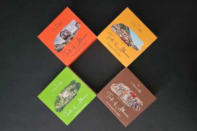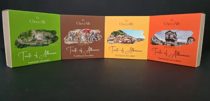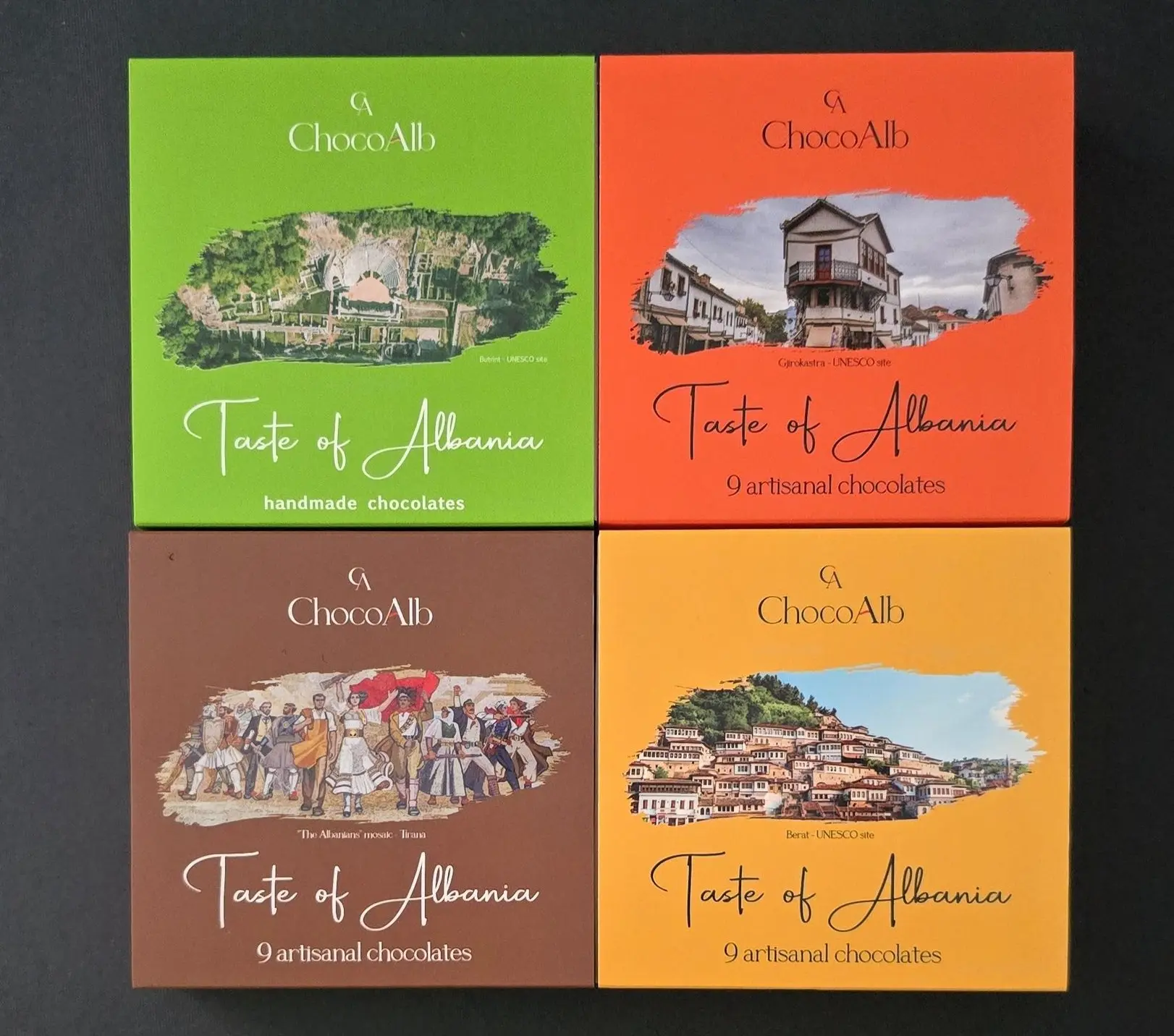 Kutia me 9 çokollata artizanale është produkti i parë i Chocolab, përmban 9 pralina unike nga 9 qytetet më turistike të Shqipërisë. Pralinat janë me shije nga produktet karakteristike të këtyre qyteteve. Më poshtë mund të shihni përmbajtjen e secilës praline, sipas qytetit.