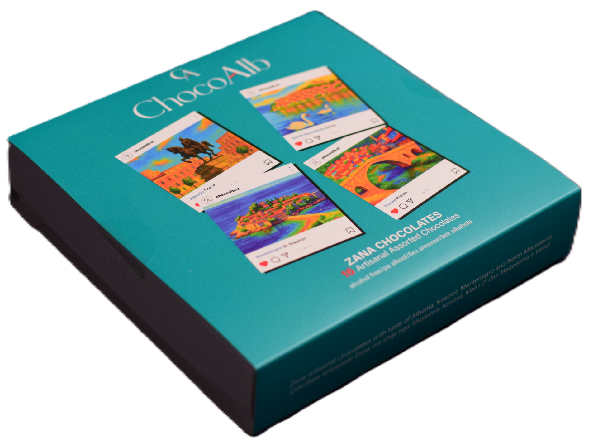 Kutia Zana përmban 16 pralina, pa alkool, me katër shije të krijuara posaçërisht për katër vende që kanë të përbashkëta më shumë sesa mendohet.